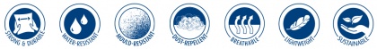 Auf der Außenseite bestehen ScanSafe® Produkte aus DuPontTM Tyvek®, welches für seine Kombination aus seidiger Oberfläche und unübertroffener Stärke bekannt ist: Tyvek® ist reiß-, berstfest, wasser- und staubabweisend.