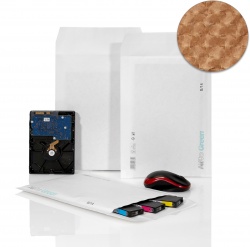 AirPro Green is the environmentally friendly bubble mailer which does not require any bubble film to be protective. Paper bubbles do the job! Embossed paper inside the bag forms a strong cushioning layer that protects pressure-sensitive contents from impact. Completely without plastic, this cushioned mailer scores with its environmental friendliness, strength and lightness! |